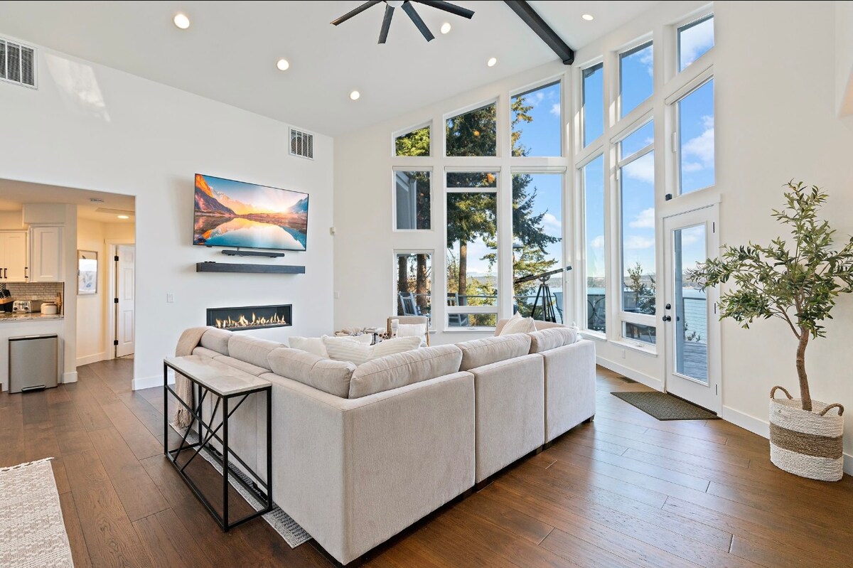 Welcome to the Coho Cabin, a tiny house/log cabin perched atop Skagit Bay with direct westerly waterfront views of wildlife, Whidbey Island and the Olympic Mts. Built in 2007, it's an authentic log cabin, custom designed out of Alaskan Yellow Cedar. Enjoy the rustic-yet-elegant vibe, radiant heated floors, cozy loft bed, outdoor bbq and private location. Located 10 min. west of La Conner, guests can browse shops, adventure on unique hikes, or enjoy a relaxing beach stroll.