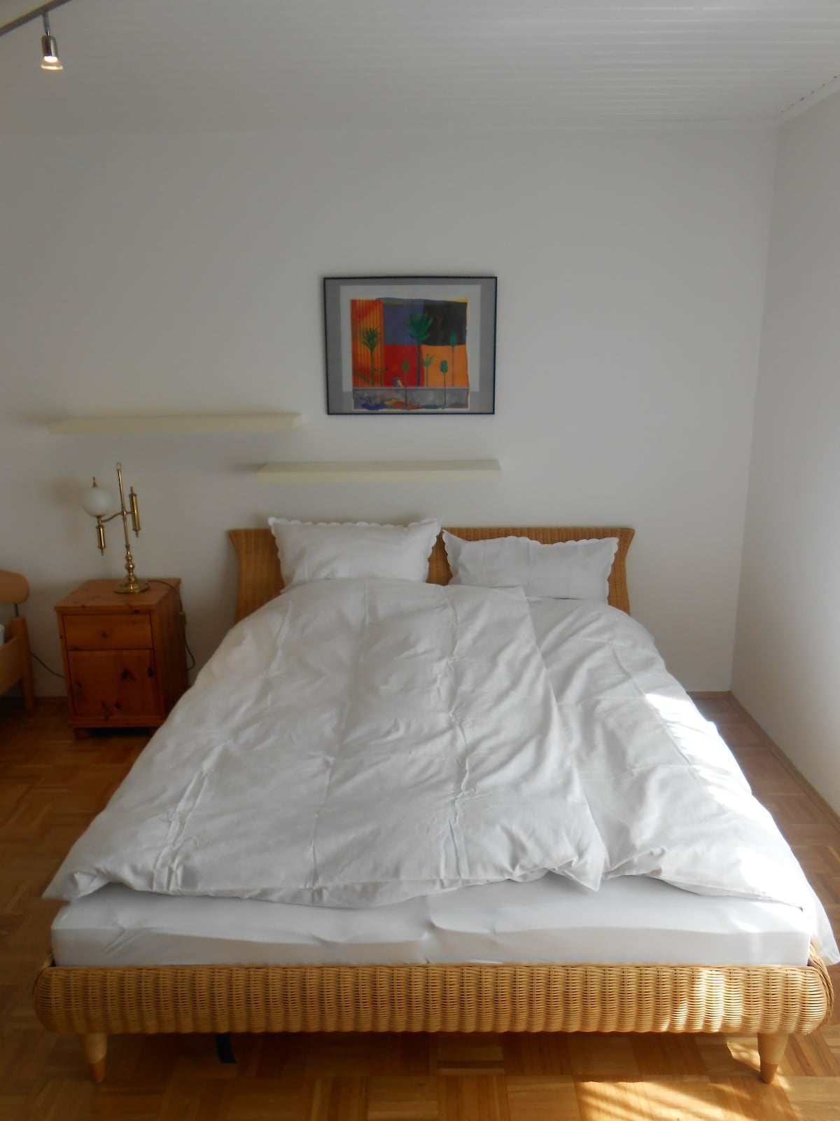 Ruhige und helle Wohnung mit Küche und Balkon - fußläufig an einem Waldgebiet. Eigener kostenloser Parkplatz vorhanden. Die Wohnung hat ein Bad (Dusch-Badewanne), Flur, Schlafzimmer, Wohnzimmer mit vollausgestatteter Küche Das Bett ist mit hochwertige Emma Matratzen 1,80 x 2,00 m und hochwertigen Lattenrost ausgestattet. Der Balkon lädt zum entspannen oder einem netten Frühstück ein.