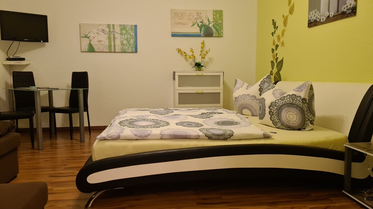 24 kvadratna metra životnog prostora za vlastitu upotrebu, prostran 1-sobni stan s pogledom na dvorište, koje stanari koriste kao parking mjesto Obezbijeđeno u dnevnom boravku: dan krevet na 1,80 m koji se može raširiti radni stol u dnevnom boravku s sklopivom stolicom dvije komode s policom U niši je dostupan dodatni prostor za odlaganje Mala kuhinja s dostupnim frižiderom i posuđem kupatilo s WC školjkom, tuš-kadom i zidnim grijanjem Stan je nedavno renoviran i moderan. U blizini se nalaze brojne trgovine, a javni prevoz je u neposrednoj blizini za 2-5 minuta. To je 15 minuta hoda do centra grada. U blizini se nalazi univerzitet u Rostocku. KTV (Kröpeliner Tor Vorstadt) je poznat po mnogim kafićima i barovima.