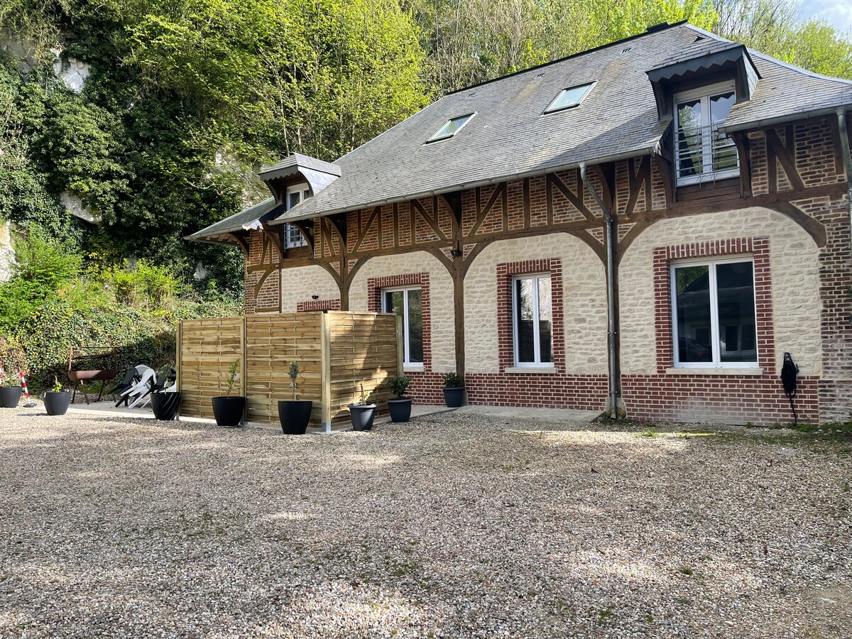 U srcu Pays de Caux. Naša seoska kućica na katu s prekrasnom terasom omogućit će vam da uživate u svim zanimljivim mjestima Seine-Maritime, a posebno Boucles de la Seine. Petit +: moja masaža i shiatsu su u prizemlju. Velika opremljena kuhinja (rerna, mikrovalna pećnica, frižider, mašina za pranje suđa), dnevna soba s kaučem na razvlačenje, TV - 1 spavaća soba (1 krevet 160 x 200 cm), - kupatilo (kupatilo, tuš kabina, wc). - Zatvoreni vrt, terasa