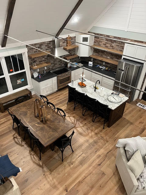 Prekrasan dom uz jezero, gdje vas čekaju zadivljujući pogledi i nezaboravni zalasci sunca! Savršeno za ljubitelje prirode, uživajte u aktivnostima kao što su vožnja kajakom, plovidba i ribolov, sve to na samo nekoliko trenutaka od vašeg praga. S pogledom na državni park, imat ćete pristup živoj muzici, iznajmljivanju brodova i predivnim restoranima. Uživajte u našem kaminu, ognjištima, masažnoj kadi, igraonici i vrlo dobro opskrbljenoj kuhinji za jednostavno kuhanje. Opustite se i uživajte u ugodnoj atmosferi koja nudi i avanturu i mir.