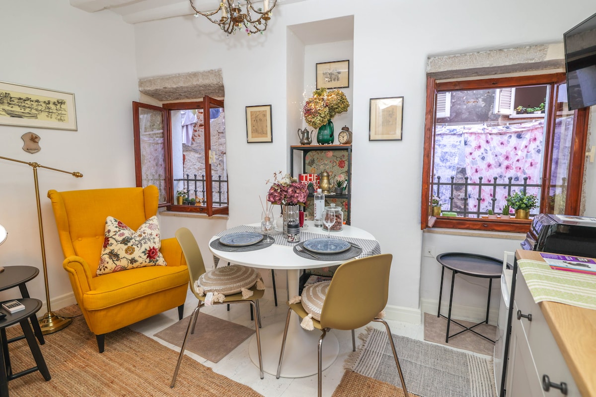 Uživajte u boravku u Rovinju u ovom šarmantnom, nedavno renoviranom prizemnom studiju! Pažljivo dizajnirana kako bi sačuvala karakter kamene kuće stare više od 200 godina, spaja historiju s modernom udobnošću. Kvart je živahan i pun karaktera, a brojni restorani, kafići i barovi su udaljeni samo nekoliko minuta. Savršeno skrovište za parove ili samostalne putnike.