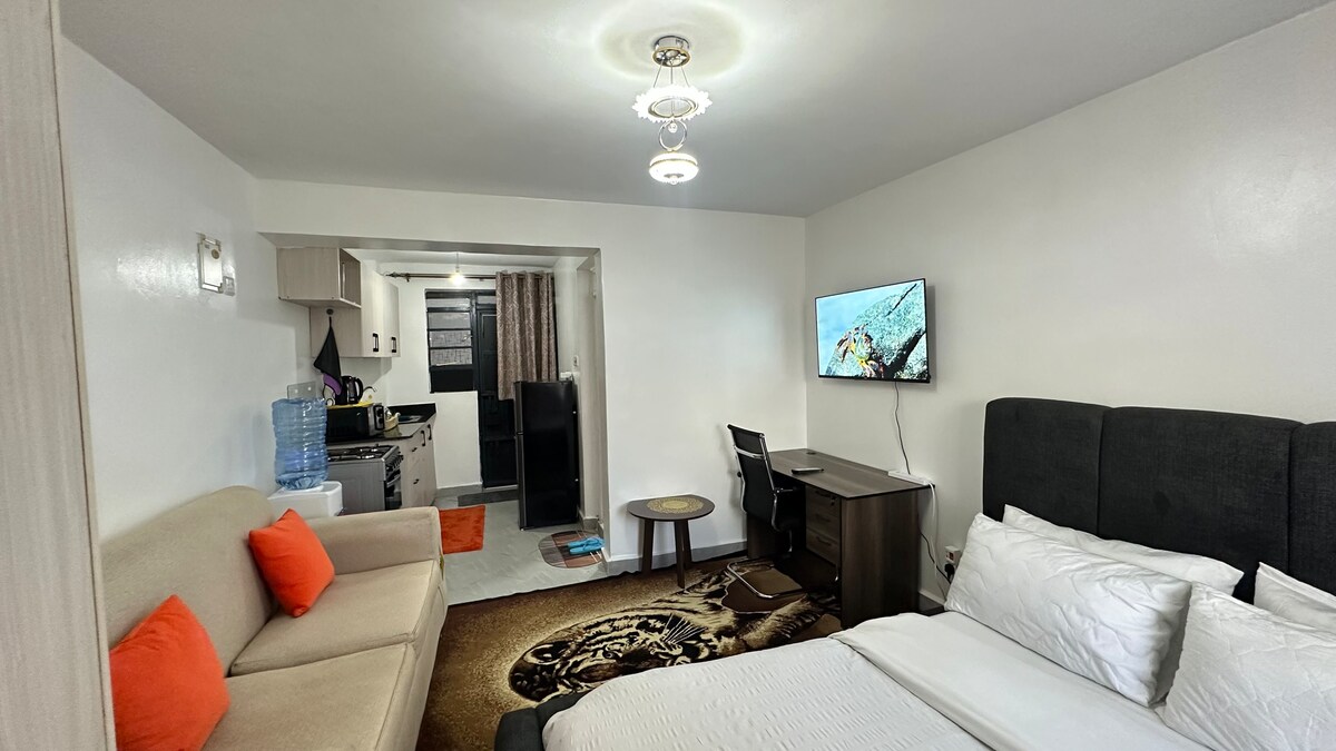 Modern 1-Bedroom Apartment with Stunning City Views in Kilimani Welcome to your stylish home away from home on the 16th floor! This newly built, beautifully furnished one-bedroom apartment offers a cozy, homely vibe with breathtaking city views. Enjoy a restful night on a comfortable mattress with clean white linen, and unwind with a 55” Smart TV for your favourite shows and movies. Start your day with complimentary coffee, tea, and sugar, and refresh with