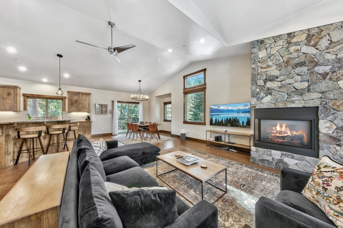 Pobjegnite u mirno planinsko okruženje u našem zadivljujućem smještaju u Tahoeu. Novi dom s luksuznim namještajem, privatnom masažnom kadom, klima-uređajem, stolnim nogometom, dva kompleta kreveta na sprat, novim televizorima, PlayStationom 5, više stambenih prostora, glavnim kupatilom inspirisanim spa centrom, univerzalnim punjačem za električna vozila 2. nivoa, novim uređajima, kaminom i još mnogo toga. Ovaj prostrani objekat je u potpunosti opremljen svime što vam je potrebno da bi vaš boravak bio udoban i ugodan.