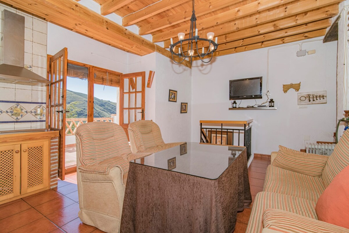 Udobna kuća u mirnom i prekrasnom ruralnom planinskom okruženju u Granadi. Nalazi se u malom gradu pored prirodnog parka Sierra Nevada, 25 minuta od Granade, 20 minuta od La Alpujarre i 25 minuta od plaže. Kuća ima dva sprata i vanjsko dvorište s malim bazenom, samo za vas. Dole: otvoreni raspored sa dnevnim boravkom, trpezarijom, kuhinjom, malim toaletom i terasom. Na spratu: spavaće sobe i kupatilo. Planinarske staze 5 minuta hoda od smještaja.