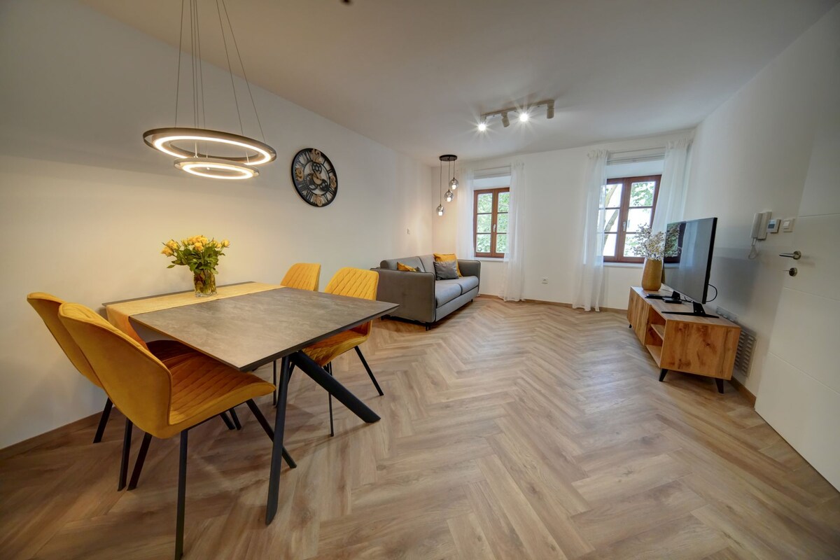 Novo renovirano 2025. godine. Podno grijanje. Idealno za 4, udobno za 6. To je stan u prizemlju (55 m2) s vlastitim ulazom. Ima besplatan privatni parking, brzi Wi-Fi i TV, mašinu za pranje/sušenje veša, potpuno opremljenu kuhinju, dvije spavaće sobe s velikim bračnim krevetima (180x200), dnevni boravak s kaučem/bračnim krevetom, kupatilo s tušem i terasu sa stolom i stolicama. Nalazi se u mirnom kvartu - Hofer/Aldi je udaljen 600 metara, autobus je direktno povezan s centrom grada 300m . 5 minuta ili 3 km automobilom do centra grada.
