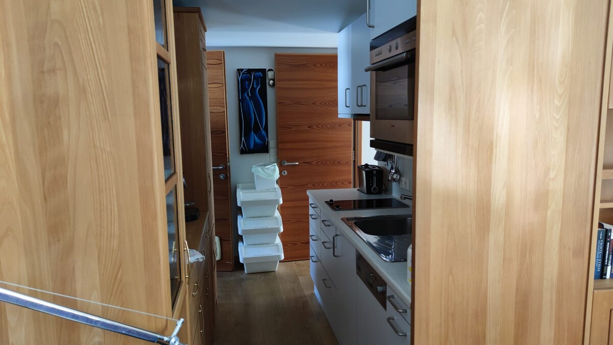 Moderan stan površine 30m² na mirnoj lokaciji ! Sadržaji: kuhinja, kupatilo, WC, bračni krevet 160 cm, Wi-Fi, TV, privatna terasa, privatni parking, privatni ulaz Centar Innsbrucka autobusom za 15 - 20 minuta /// s vlastitim 10 minuta automobilom Biciklizam, planinarenje, opuštanje, čitanje itd. s ulaznih vrata! Zasebni troškovi: 3,00 EUR boravišne takse po osobi/po noćenju na licu mjesta