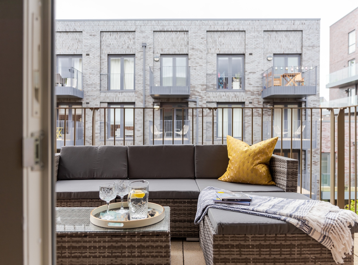 Uživajte u elegantnom boravku u ovom stanu na visokom spratu, udaljenom samo 2–3 minute od stanice Woking. Brzi vozovi za London Waterloo voze svakih 10 minuta, a do grada stižete za manje od 30 minuta! - Spavaća soba velike bračne sobe sa spojenom kupaonicom – Udoban kauč za 1 dodatnog gosta - Potpuno opremljena kuhinja: mašina za pranje sudova, friteza, mašina za pranje veša - Pametni TV s aplikacijama za streaming – Besplatan osigurani podzemni parking - Sušilo za kosu, osnovne potrepštine - Nevjerovatan pogled na horizont - Savršeno za posao ili odmor, vaš dom u srcu Wokinga.