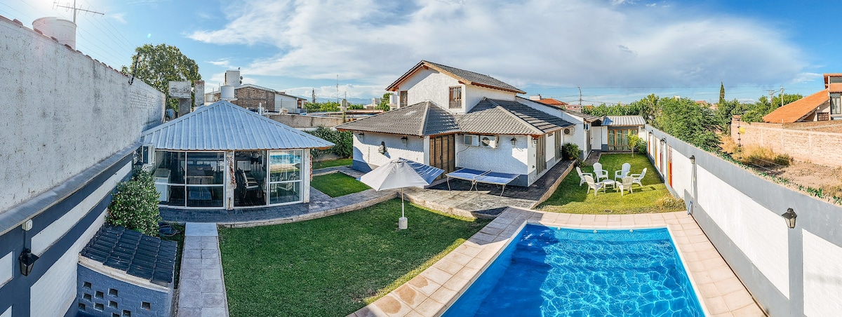 Disfruta con familia y amigos en este tranquilo condominio privado Departamento con ingreso automatizado y estacionamiento techado para 4 vehículos Habitaciones con vistas a la pileta y viñedos Aire acondicionado frio-calor y estufas a gas, smart-tv, WI-FI. Salon con churrasquera, pileta, areas verdes , recepcion y regaleria Amplio espacio dentro de complejo privado de cuatro departamentos ubicado a minutos de las principales bodegas de la zona.