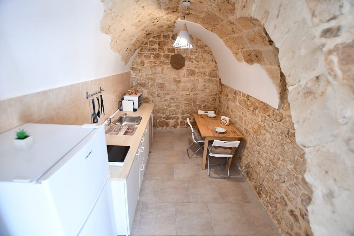 Tipična kuća u drevnom selu Rutigliano iz 17. vijeka, smještena u blizini glavne ulice sela, koja se sastoji od tuf i kamene kuhinje, kupatila, dvokrevetne spavaće sobe, malog dnevnog boravka i terase. Rutigliano je karakteristično selo u Apuliji s historijskim centrom koji datira iz srednjeg vijeka. Udaljen je 20 km od aerodroma Bari Palese, 21 km od Polignana do mora , 31 km od Monopolija , 36 km od Alberobella , 10 km od mora. Jezici koje govori italijanski,njemački i engleski domaćin.