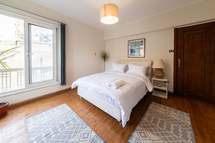 Svijetla prostrana spavaća soba u vrtnom dijelu grada