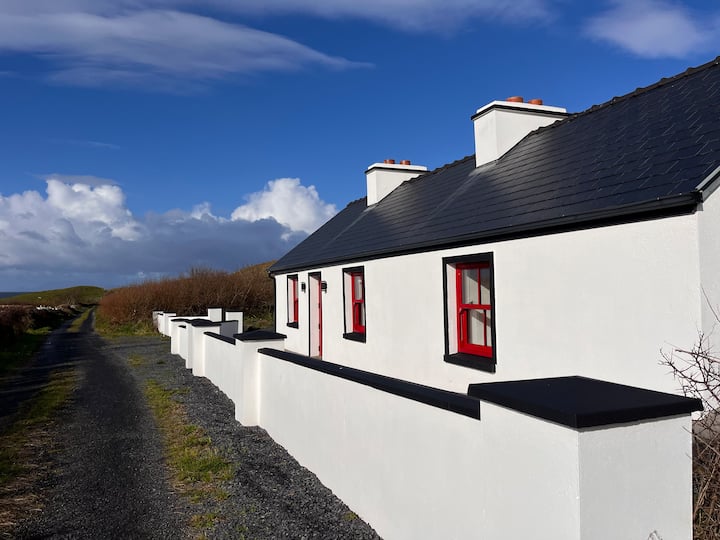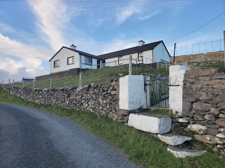 Spavaća soba s četiri postera s pogledom na more u Renvyleu, Connemara
