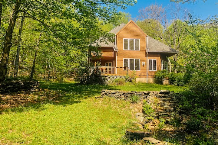 Savremena brvnara s masažnom kadom, jezerom i kaminom
