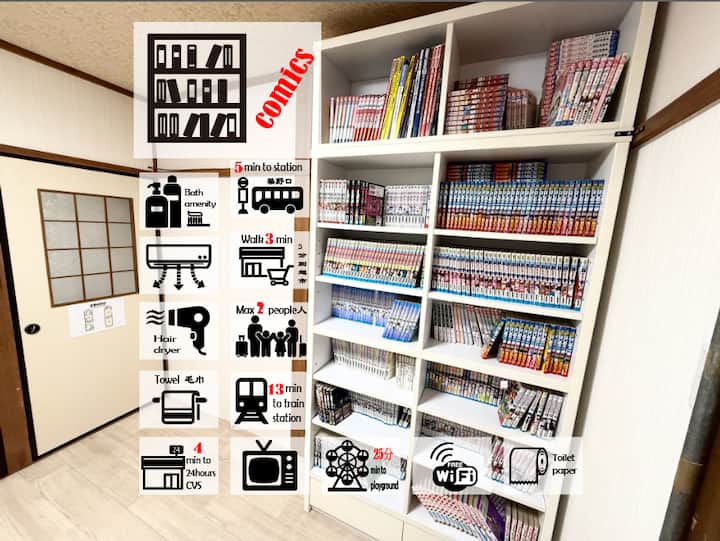 Korien 6 minuta hoda/Osaka i Kyoto oko 30 minuta/Privatna porodična samostojeća kuća 8 osoba/Dostupan parking/Dostupan je dugoročni smještaj