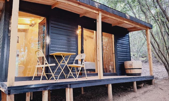Kuća na selu s bazenom, bačvom i pogledom na brdo