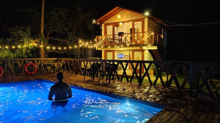Cabaña WiFi Starlink, piscina/AC-BBQ cerca a playa