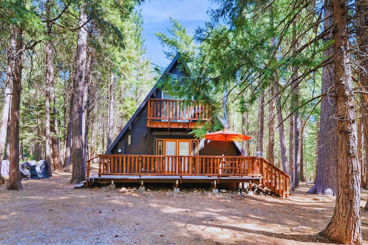 Brvnara s kosim krovom i masažnom kadom u blizini parka Mount Lassen