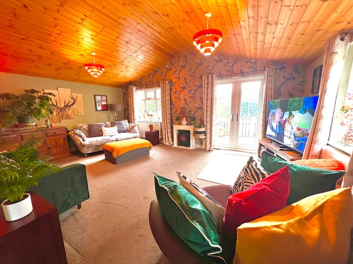 Udobna, dvokrevetna soba u umjetničkoj kući.