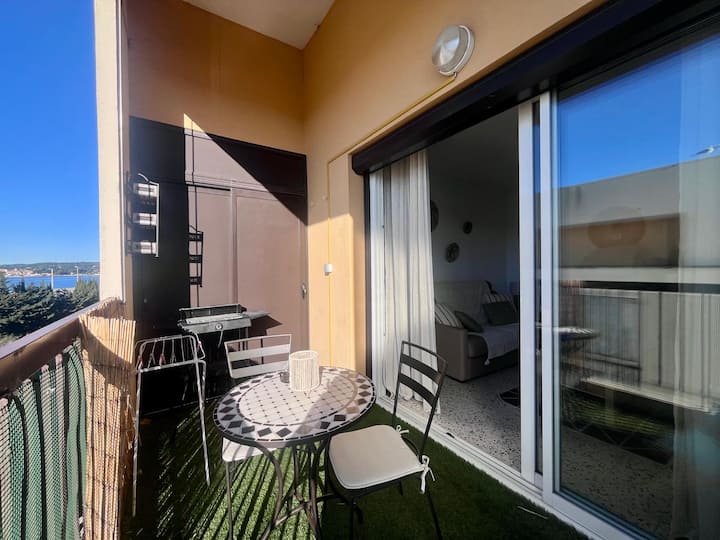 Klimatizovan T2, pogled na luku 100 m od plaže