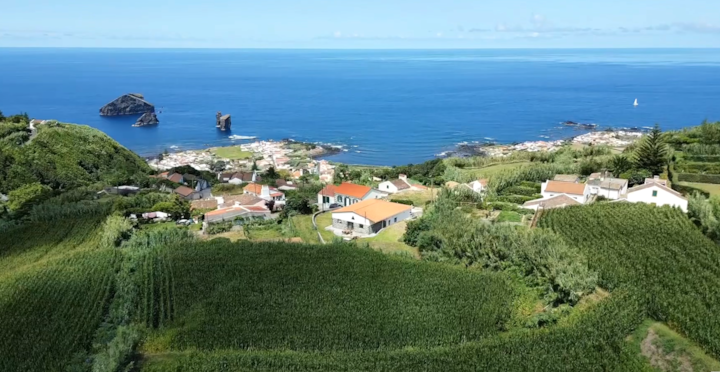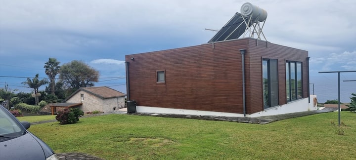 Drvena kuća s pogledom na okean i zalazak sunca