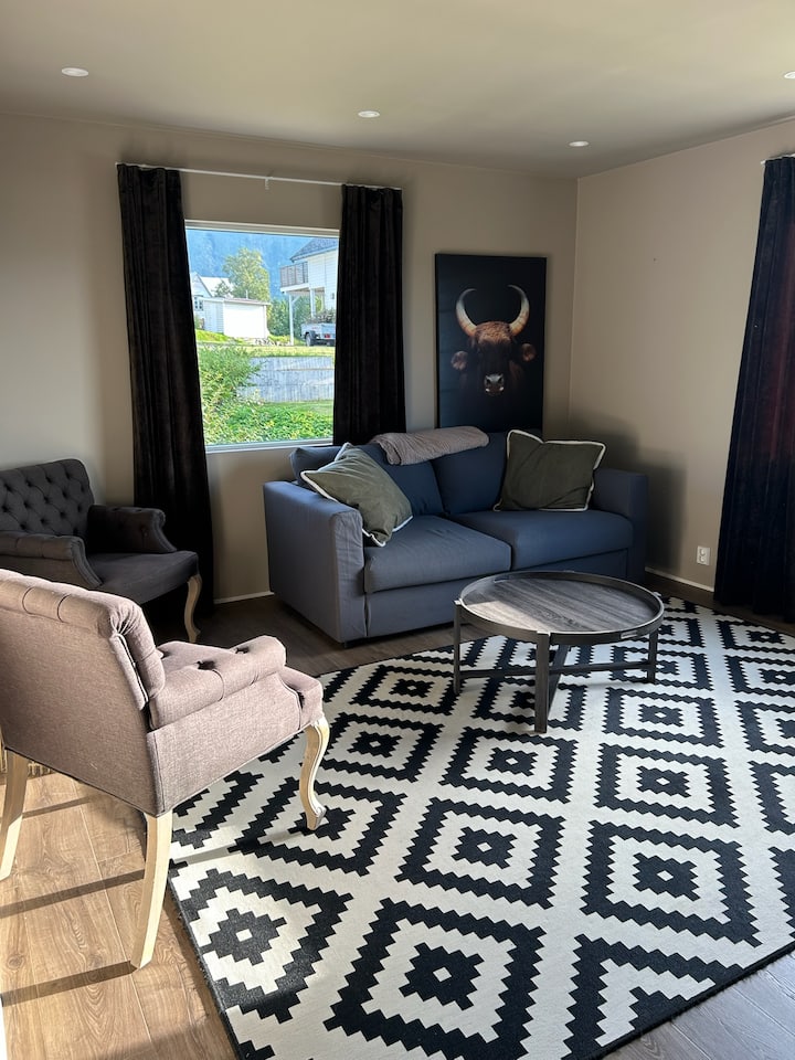 Sortland. Udobna soba u blizini centra grada i polja/otvoreni zrak.
