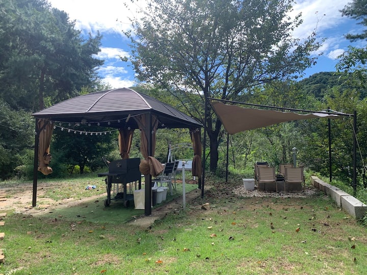 Myeongdal House 1 tim dnevno, besplatan roštilj u prednjem dvorištu, čist zrak s planine Tongbangsan, Byeolmang, šumski pas, cvjetni pas, liječenje ognjištem