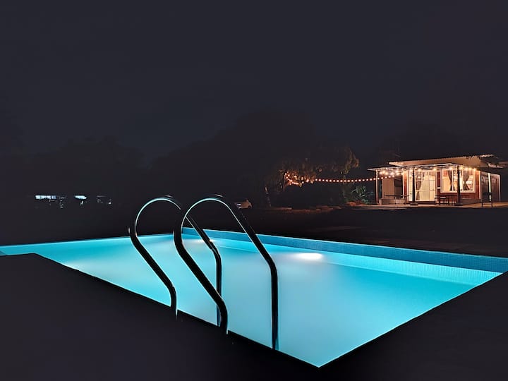 Glass House 4BHK Villa w Pool - walk to Awas beach