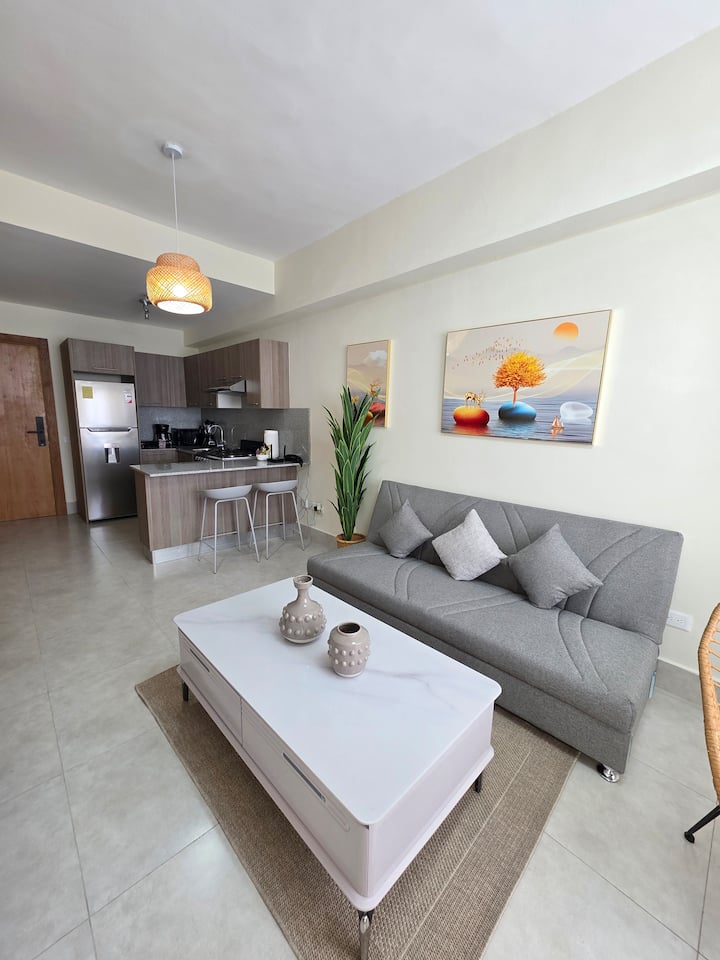 Moderna 1BR s kuhinjom i kaučem na razvlačenje uz plažu