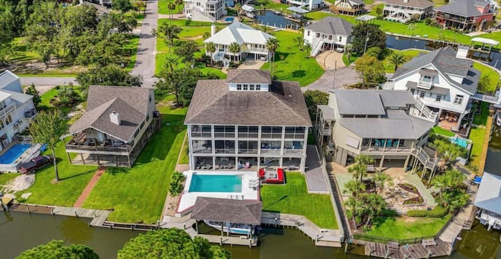 New, show stopping, huge waterfront home with pool