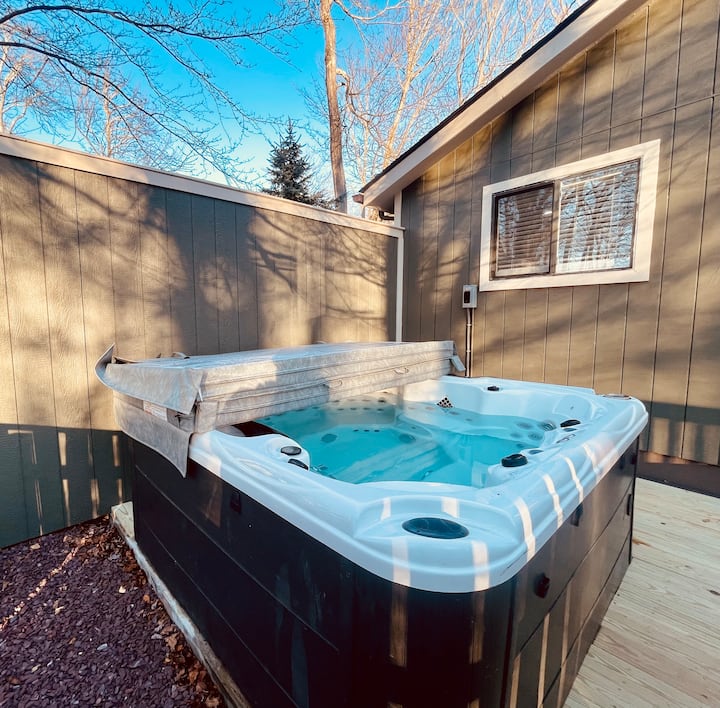 Masažna kada i ognjište: udobna planinska kuća Pines u Poconosu