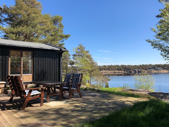 Sunčana brvnara s pogledom na more, u Skjærhaldenu, Hvaler