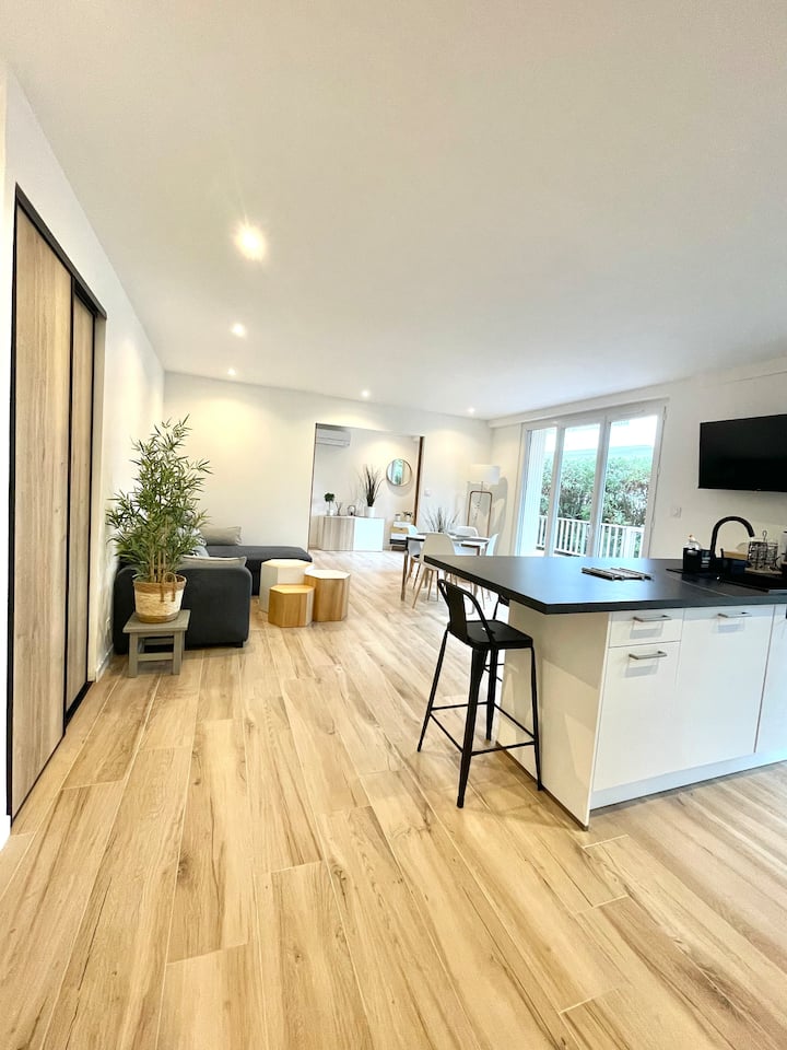 2 spavaće sobe s pripremljenim krevetima, okrenute prema plaži