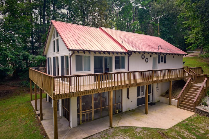 Udobna koliba uz jezero na jezeru Wateree s dokom