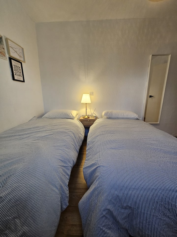 Svijetla dvokrevetna soba u mirnom stanu s dobrom povezanošću