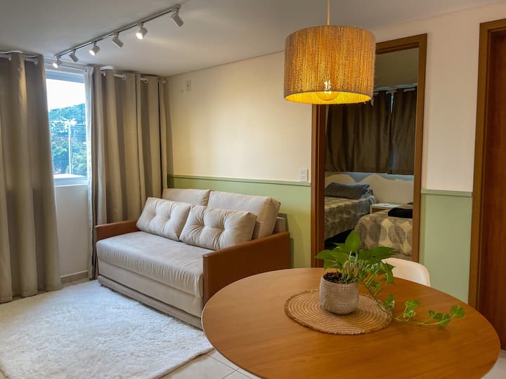 Espaço acolhedor com Ar cond. + garagem + elevador