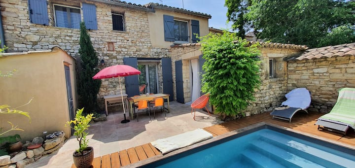 *Kuća okrenuta prema jugu u Aubussargues Uzès Nîmes s bazenom*