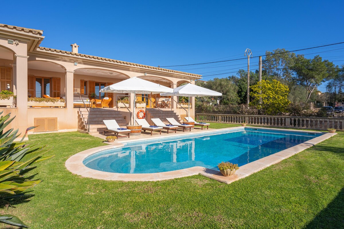 Encantadora e íntima casa a 10 min. de Palma con 7000m2 de Jardin, piscina, Jacuzzi exterior climatizado y precioso jardín. Consta de 3 dormitorios y 2 baños .Dispone de gran terraza con vistas al jardín, porches, chimeneas, barbacoa, aire acondicionado y calefacción…Muy amplio y cómodo. Zona tranquila a 7km del centro de Palma, aeropuerto y playas. Supermercados a 1km. Ideal para descansar, excursiones por la isla, ciclismo etc...Nos encantan las mascotas, así que tráetela ;-)