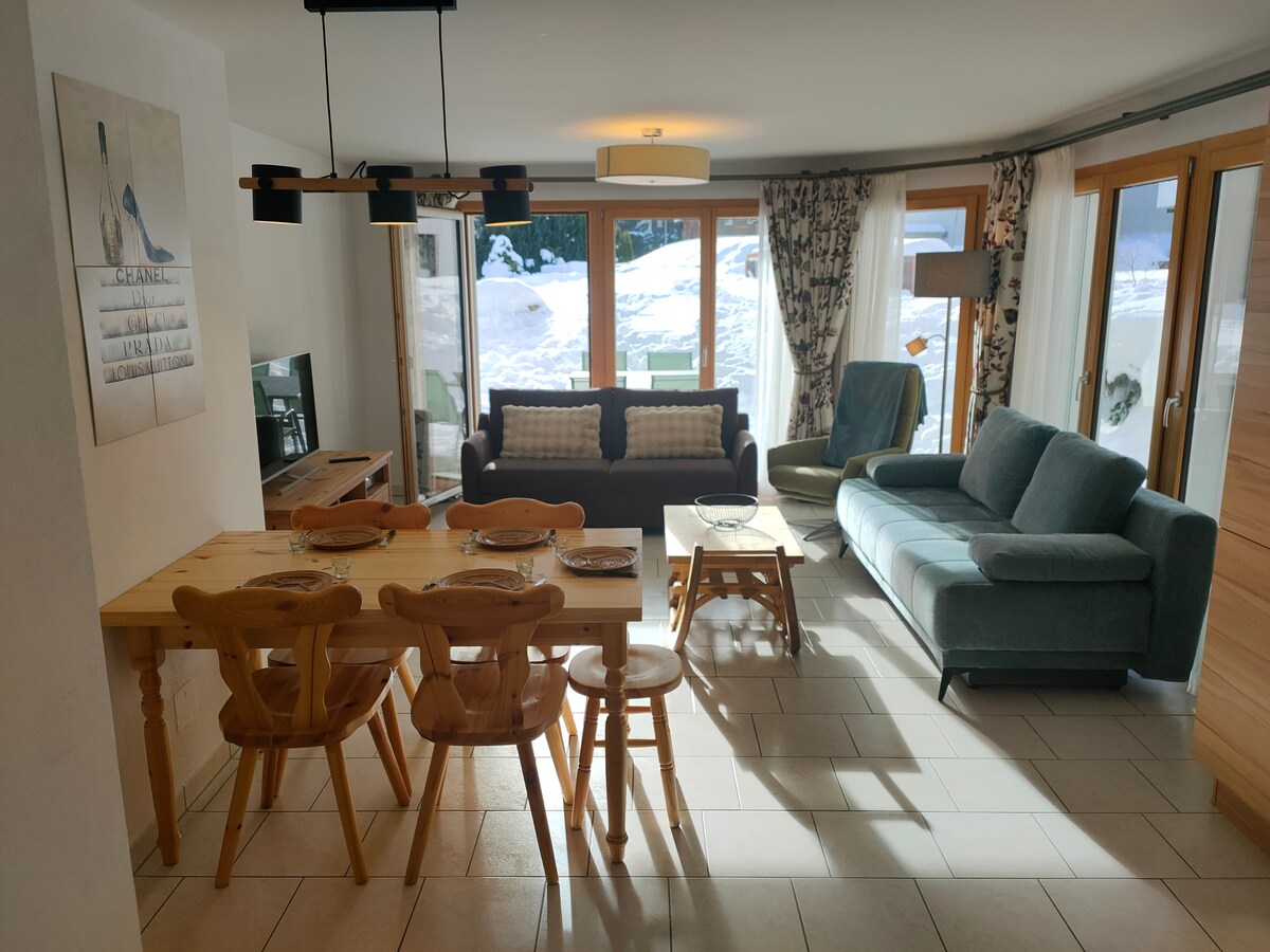 Apartman Derby-Panorama sa saunom, jacuzzi kadom, kaminom i veličanstvenim pogledom na planine savršen je za prijatelje i porodicu. Zimi nagib počinje i završava u stanu. Ljeti ćete imati među mnoštvom pješačkih staza ispred vrata, a tu je i veliki sportski prostor u kojem možete uživati u Alpin Golfu, tenisu, odbojci na plaži i mnogim drugim aktivnostima. Ovaj stan ćete pronaći direktno u ulici Shopping & Restaurant.