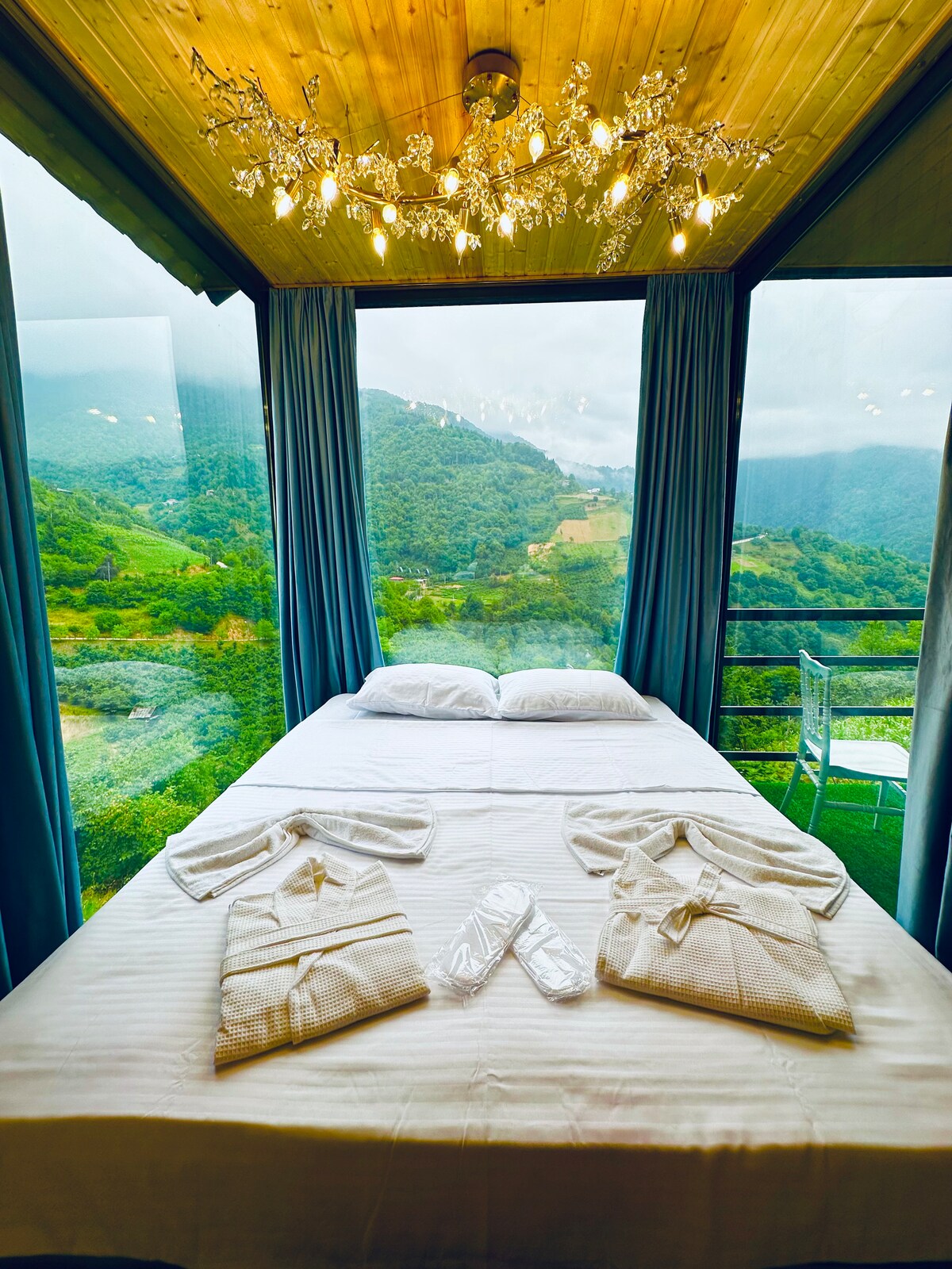 The price includes a visit to the amusement park costing 160 lari ($60) for two. Kick back and relax in this calm, stylish space with unique panoramic bedrooms and jacuzzi. Our complex consists of cottages and a park with unique locations, such as the world's largest bed-mattress in the shape of Adjarian khachapuri, as well as the largest 9-meter wine horn in the world, huge bird nest, glass cottage, relaxation areas, and much more.