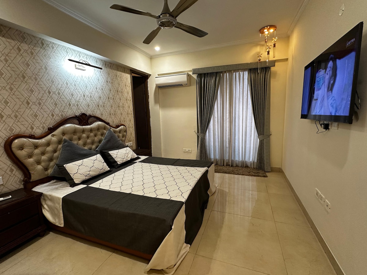 Smješten u Falcon Viewu, Mohali, ovaj prostrani 3 BHK nudi osjećaj doma. Doživite luksuzan život u ovom potpuno namještenom stanu 3BHK u Mohaliju. Idealan za duže boravke, ima elegantne interijere, brzi Wi-Fi, pametne televizore, potpuno opremljenu kuhinju i privatni parking. Uživajte u pristupu klupskim sadržajima kao što su teretana, kafić, minimart i prostor za igru za djecu. Savršeno za poslovne putnike i porodice. U blizini aerodroma Chandigarh, bolnice Fortis i informatičkih centara.
