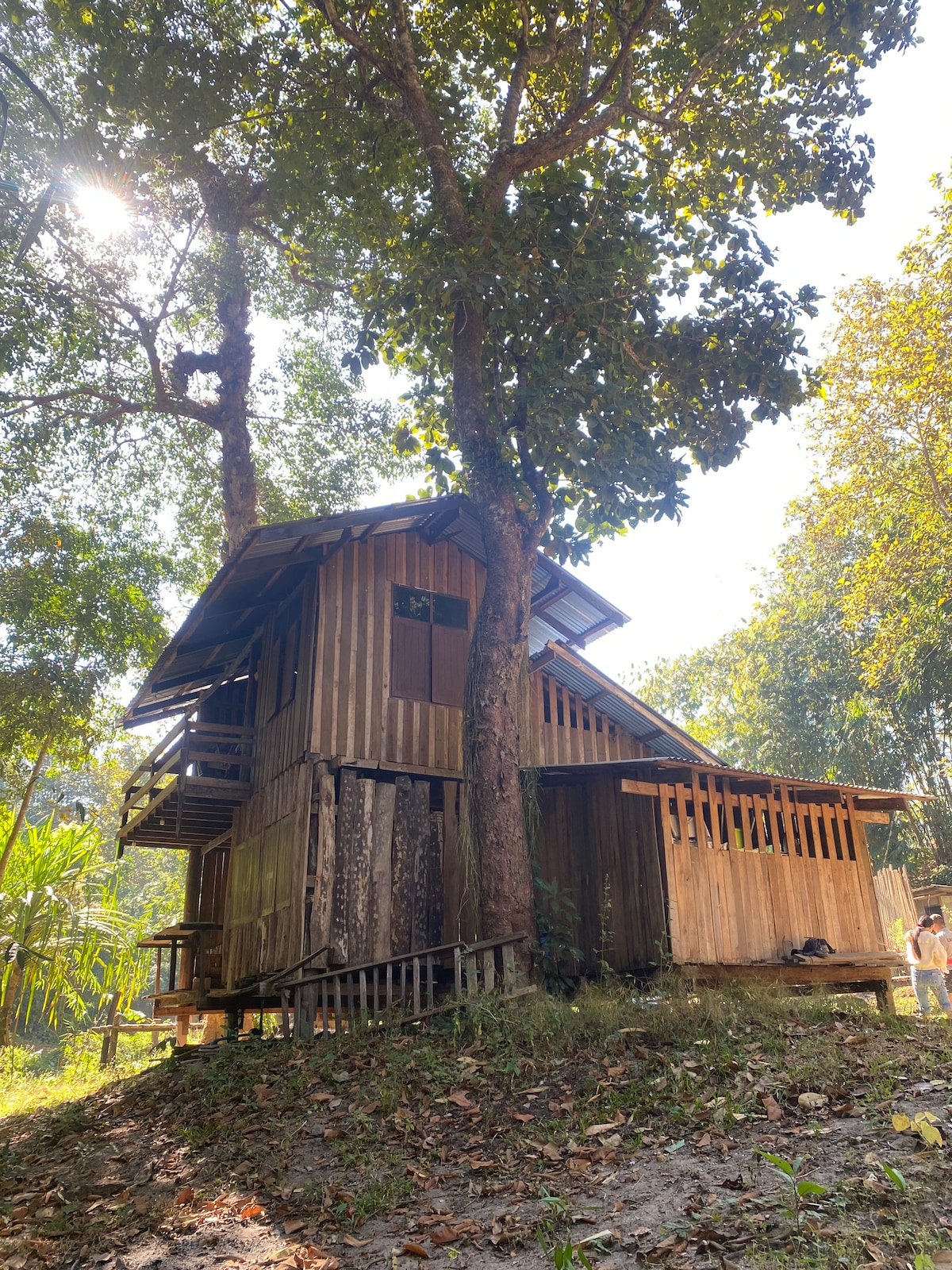 Cozy forest retreat for up to 5 guests. Stay in a house (3people) with fridge, microwave, kettle, WiFi, and bathroom, or a two-storey tower with tent-style sleeping upstairs and open space downstairs. Outdoor kitchen with basic cookware available. Surrounded by forest, sugarcane fields, and a quiet monastery—perfect for families or friends. Enjoy fresh garden veggies, boating, biking, swings, or volunteer at the nearby temple. Peaceful place, no loud noise; limited bathrooms.
