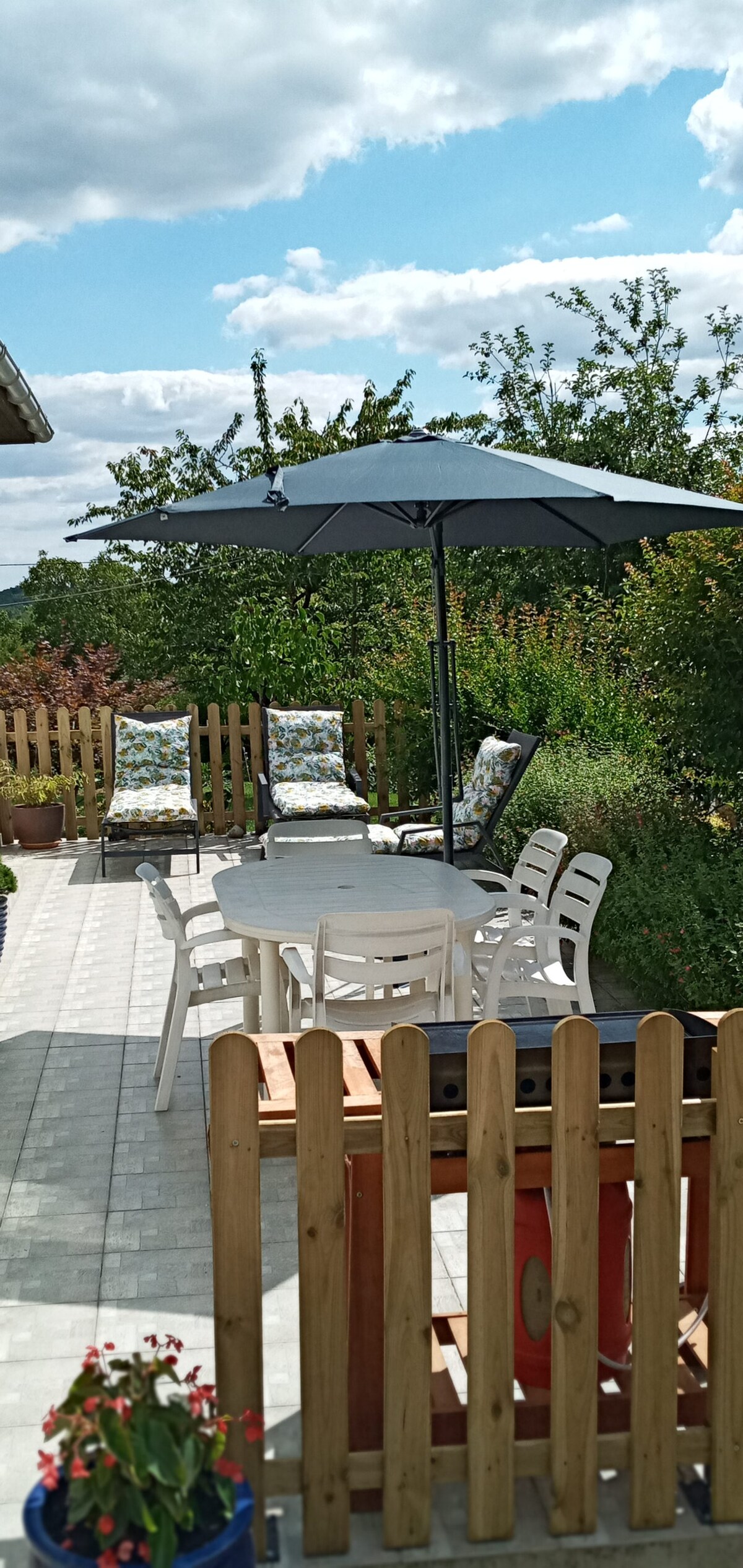 U zelenom okruženju, kuća je ažurirana, a istovremeno zadržava šarm sela, cijenit ćete njen mir. Sastoji se od 3 spavaće sobe s prostorom za odlaganje: - 2 dvokrevetne spavaće sobe, - 1 spavaća soba s 1 bračnim krevetom + 1 jednostrukim krevetom. (Posteljina i peškiri nisu obezbijeđeni) - Dnevna soba (narandžasti TV + DVD plejer), Wi-Fi - Glavna soba s opremljenom kuhinjom (peškiri su obezbijeđeni) i trpezarijom - WC(papir nije uključen) - Kupatilo: Tuš kabina + dvostruki umivaonik.