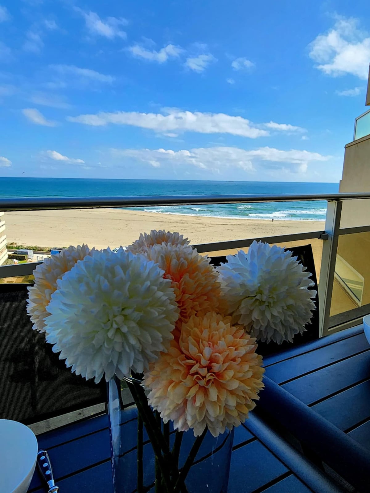 Izuzetan pogled! Stan s direktnim pristupom plaži, u sigurnom prebivalištu. Udoban smještaj. Sve što trebate učiniti je odložiti torbe, kreveti su na dolasku, s posteljinom Željeli smo stvoriti atmosferu hotelske sobe s 5* i kuhinjom 😁 Bit ćete očarani ovim mirnim utočištem. Udoban namještaj Društvene igre Knjige DVD, video igre, turistički vodiči Odlična lokacija za šetnju ili vožnju biciklom, talasoterapiju...