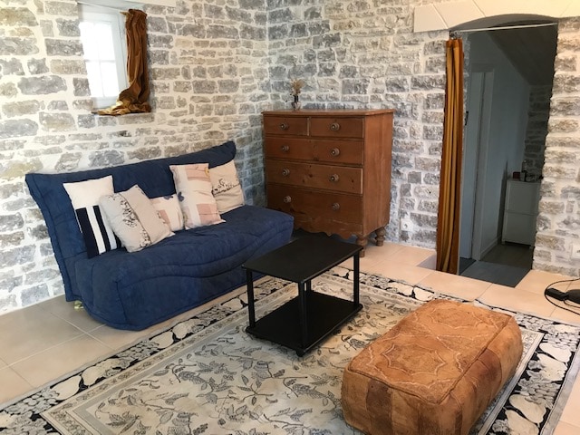 Opustite se u ovom mirnom i elegantnom studiju smještenom u mirnom zaseoku 200 metara od okeana i svjetionika Chassiron Bit ćete 2 km od sela St Denis d 'Oleron, njegove dnevne tržnice , njegove marine ( shuttleovi do Fort Boyarda, La Rochellea , L ' île d' Aix ) Mala terasa za sunčanje ili jelo i parkiranje bicikala Dolazak nakon 15:00 h, odlazak u 10:00 h (1 bračni krevet širine 160 cm, 1 kauč na razvlačenje širine 140 cm za 2 osobe) POSTOJI POSTELJINA i PEŠKIRI (besplatno)