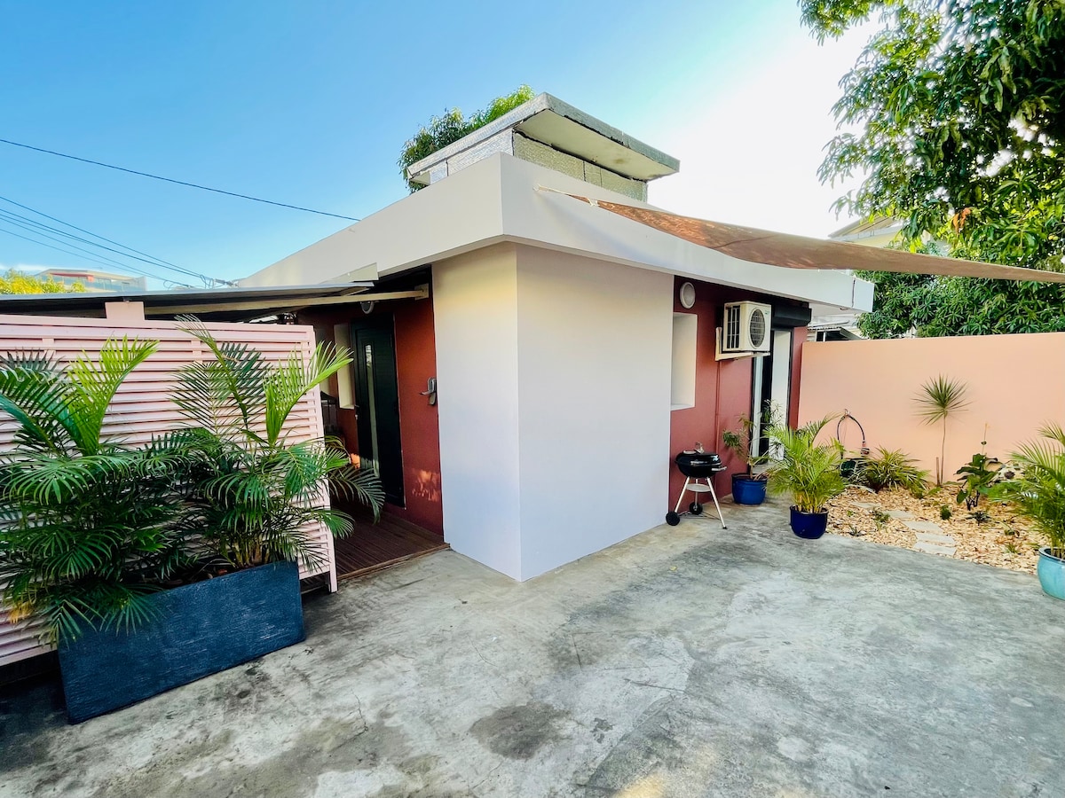 Petit studio confort, fonctionnel,climatisé et brasseur d'air, moustiquaires sur les ouvertures,proche du centre,près jardin de l’État, 2 personnes non fumeur.Bus pour l'aéroport à 5 mn. Idéal pour GR-R2 Diagonale des fous. Lit télé, Wi-Fi fibre, petite SDB, petite cuisine séparée lave-linge, réfrigérateur, plaque à induction, airfryer, micro-onde, grille-pain, Nespresso, bouilloire ,produits de base pour votre arrivée. Draps et serviettes fournis. Stationnement gratuit dans la r
