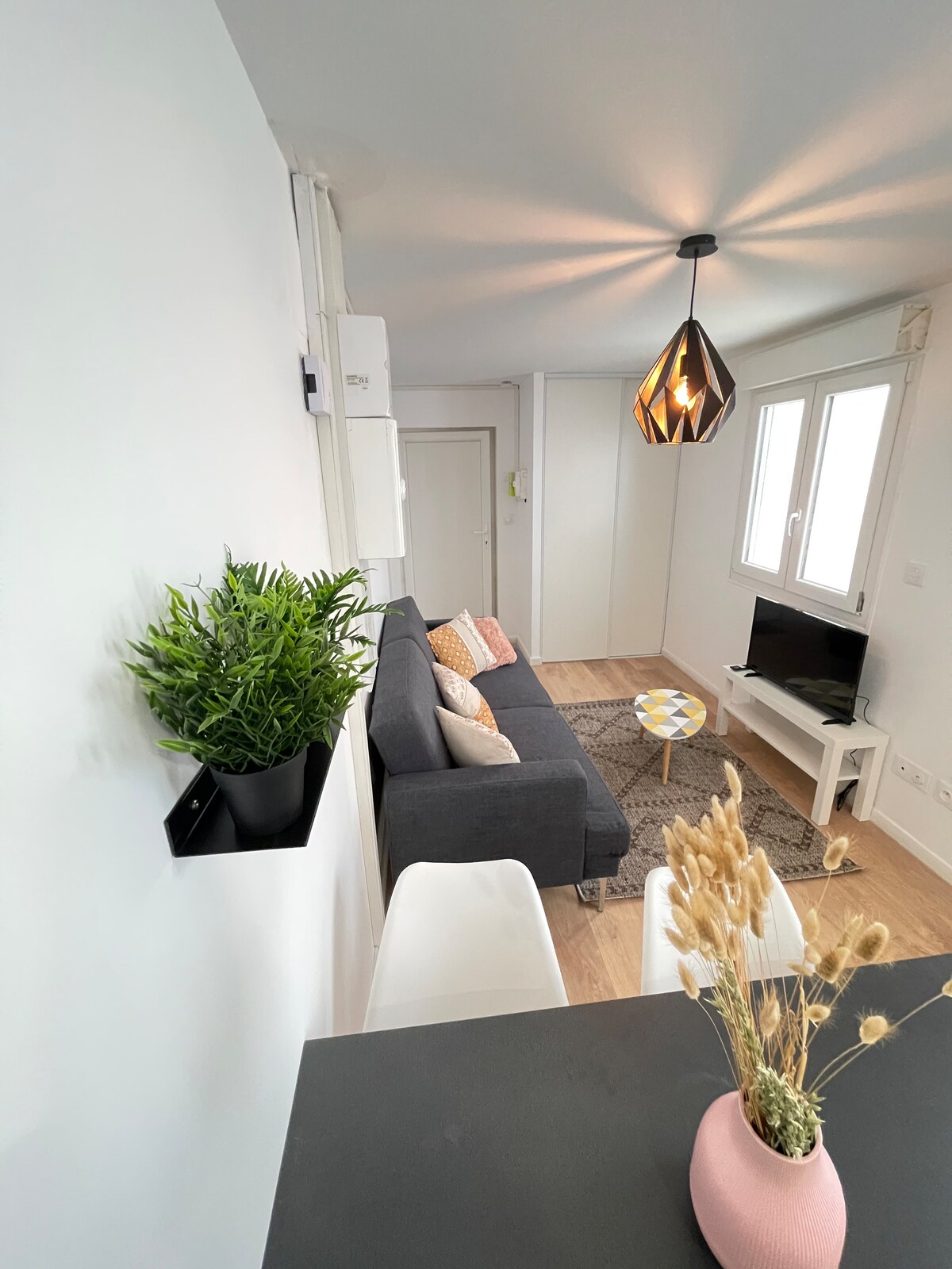 Stylish, bright, brand new 2-bedroom, 2-bath apartment in Saint-Étienne. Calm and safe, with free parking in the street available right at the base of the building. Located on the 3rd floor, offering lovely views and plenty of natural light. Just a minute walk to the Cité du Design and 10mins to the city center. 1–2mins to Carnot train station with direct trains to Lyon. Fully renovated, airy, warm, and welcoming—perfect for business trips, couples, or design lovers.