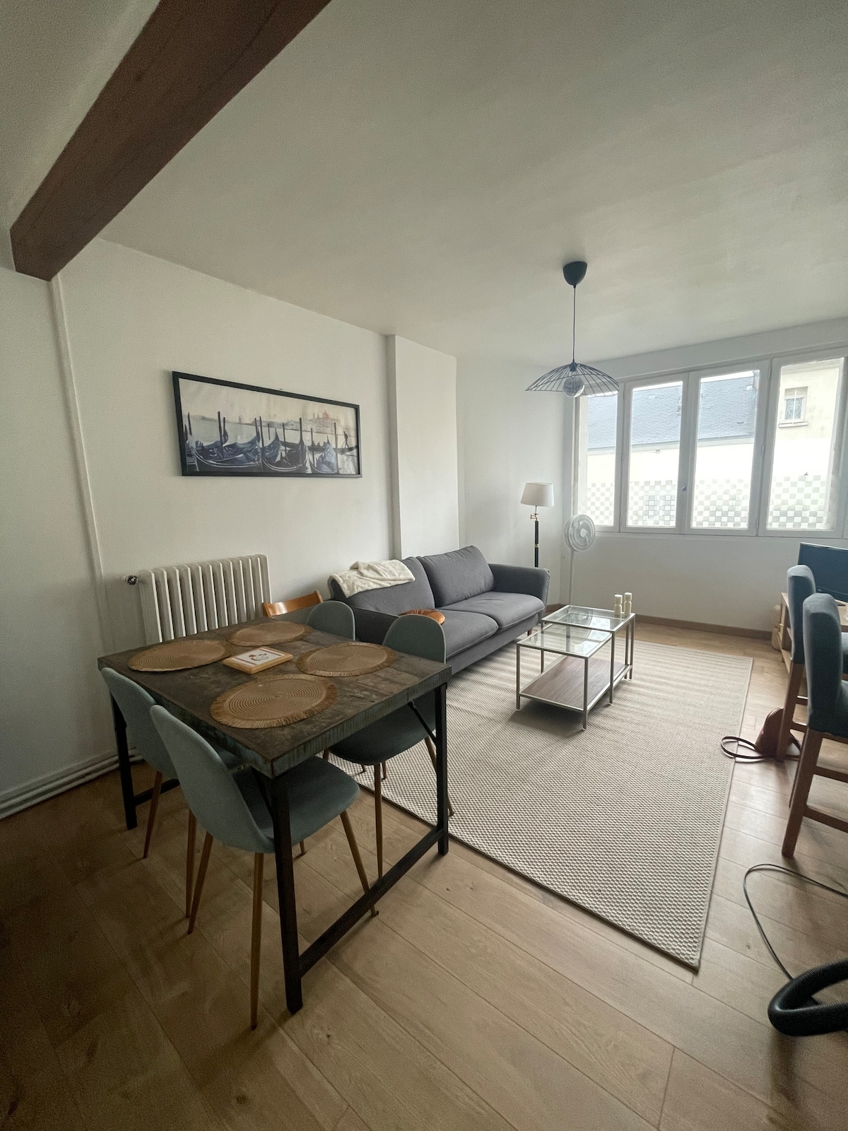 🏙️ L’Industriel • 41 m² refait à neuf en hypercentre de Le Mans Calme, à 2 pas de la gare & du Palais des Congrès 🚉. 🛏️ 1 chambre lit double + canapé BZ (idéal 3 adultes max ou 2 adultes + 2 enfants). 🚿🛁 SDB haut standing (douche + baignoire) + lave-linge, WC séparés. 📶 Fibre ultra rapide + 💻 espace travail. 🔑 Arrivée autonome (digicode) & 🔒 accès sécurisé. 🧺 Draps/serviettes fournis. 🚊 Tram/bus, restos & commerces au pied. ☕ Thé/café. 🅿️ Parking proche.