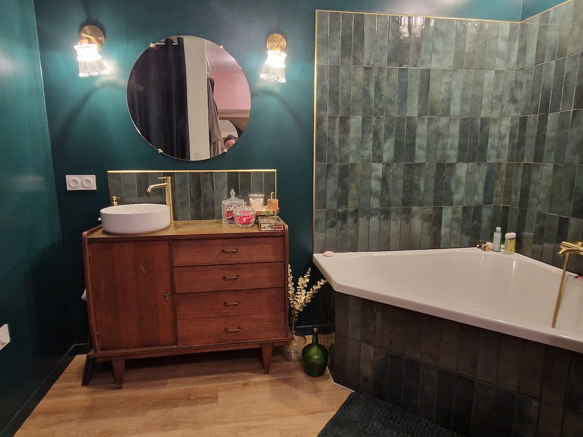 3 km od centra Chalonnesa, na putu do Loire biciklom, dođite i opustite se u ovom mirnom, svijetlom, elegantnom i radosnom smještaju (dvije spavaće sobe) gdje će vas probuditi samo pjevanje ptica ili žaba. Kauč na razvlačenje u dnevnoj sobi može primiti dodatnu odraslu osobu ili dvoje djece; dječji krevetić dostupan na zahtjev Besplatan prvi ručak Zajam za bicikle na prethodni zahtjev (5 EUR/bicikl/dan). Biciklistička garaža. Kućni ljubimci naših prijatelja nisu dozvoljeni