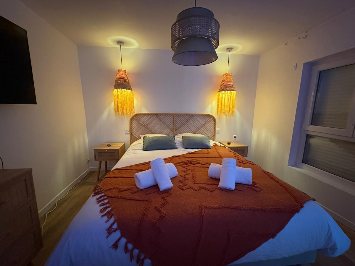 Maison de 2024 située dans lotissement de 7 maisons en construction. Les accès et l'environnement sont en travaux, des artisans interviennent dans le lotissement et il peut y avoir quelques légères nuisances sonores. Maison de 70m² avec prestations haut de gamme: Baignoire Balnéo, sauna traditionnel Finlandais, douche hammam, lit king size, cheminée électrique décorative... 1 suite parentale de 30m², 1 cuisine, 1 WC, 1 salon avec canapé-lit, 2 terrasses Lit bébé disponible sur demande