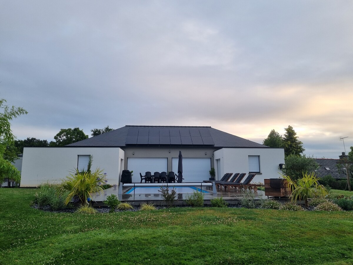 Opustite se u ovom mirnom i elegantnom smještaju. Renovirana kuća u prizemlju s južnom terasom i vrtom na sjeverozapadu. Opremljena kuhinja otvorena za dnevnu sobu, 1 jednokrevetnu sobu i veliki kauč na razvlačenje za 2. krevet, tuš kabina. 20 mns de St Malo, 13 km de combourg et 30 mns du Mt St Michel. Odlično za odmor.
